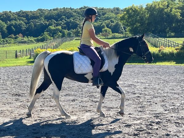 Lovebug is a Spotted Saddle horse. She's a smart, confidant girl who doesn't let her big brother best her. Both she and her brother are gaited and are extremely loving horses. Emily and Lovebug have just began their dressage career together this year.