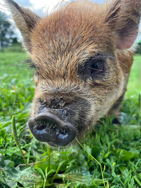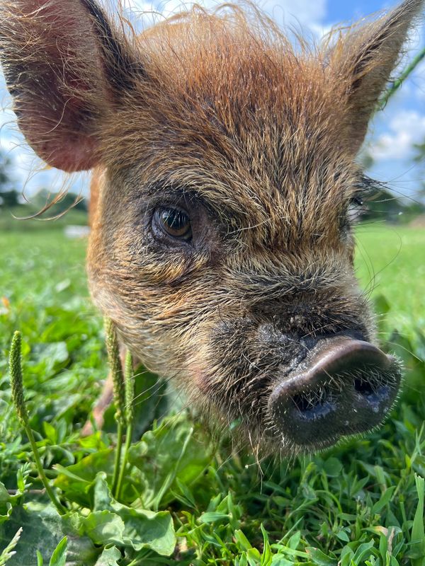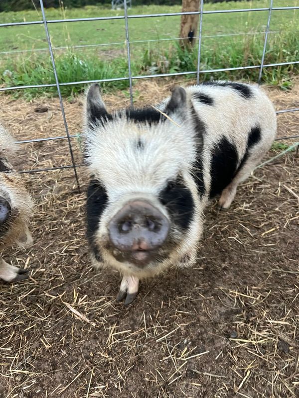 Our piglets are raised for their easy-keeping pet qualities. They are intelligent, trainable, and have sociable personalities. While the kunekune breed has a notable history for consumption, we specialize in raising ours for companionship. We consider them the dogs of the livestock world and they are an excellent addition to the hobby farm. Unlike other pet pig breeds, they prefer to graze rather than root, a trait that is invaluable to those who raise other pastured pets. Ours live happily with goats and sheep!